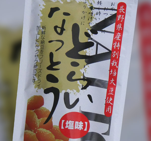 どらいなっとうは、ドライ納豆のカテゴリーに入る食品ですが、ドライ納豆=乾燥納豆には様々な製法があります。昔から、茨城県などで食されている干し納豆はドライ納豆の中でも一番古い歴史があります。弊社のドライ納豆はフリーズドライ製法です。